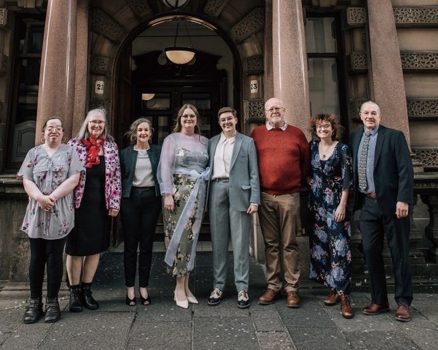 The first hour was quiet enough to hear fellow guests, and after helping Erica briefly with her hair, we enjoyed talking to Ravi and Abby, a school friend of Catherine’s) before the vegetarian food was served. We sat with a group of Edinburgh alumni, and Erica joined us for long enough to explain some of the complexities of these examples of contemporary coupledom and gender diversity.