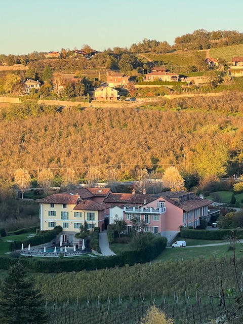 We were joined there by Jens Priewe who arrived at 12.30 from Munich, when Signor Rosario Martelli rounded us up and drove us for an hour and a half to the Relais Villa d’Amelia, south of Alba, on the edge of the smart Benevello village, with beautiful views to the north west.