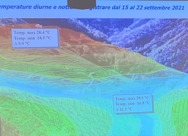 The conference proper began in the meeting room beneath the building – perhaps the cellar of former times. Perhaps 40 people, at tables of three, with a platform of six white middle-aged to elderly men, and a range of informative slides. David concentrated hard; I followed the general drift and enjoyed the slides even though the technical detail in Italian was beyond me; Prof Gerbi is very fond of Barbera…