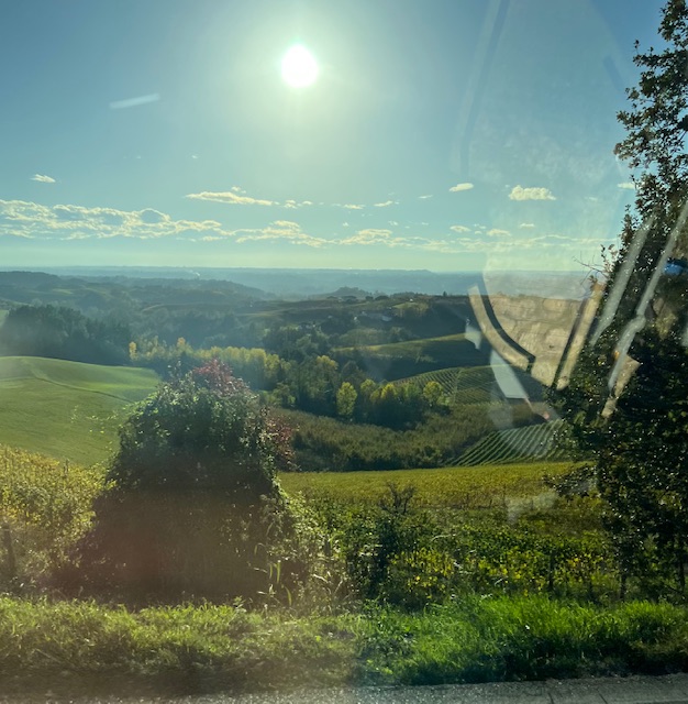 An early start – breakfast on the dot of 07.30, and then at 07.45 in the car of Silvio, i/c sales at Vinchio Vaglio Serra who drove us to the winery in Monferrato for a gathering at 09.00, and a small coach to take us to the vineyards with the proud President of the soci, within the Unesco hills.