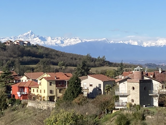 After a really good night’s sleep we enjoyed a relatively modest breakfast and half an hour’s walk around the frazione Marena with spectacular views of the Alps including Monviso.