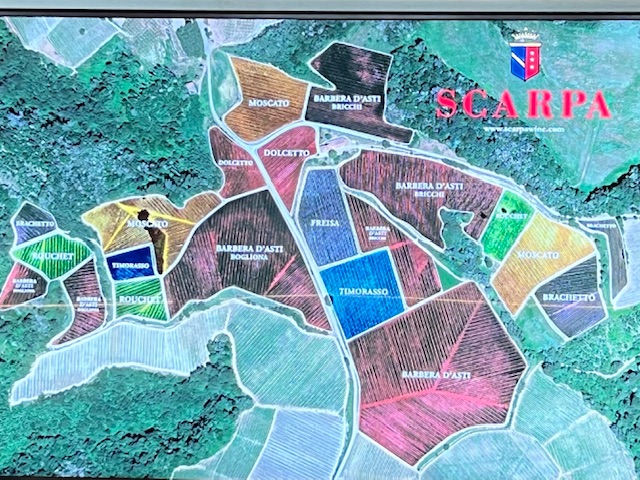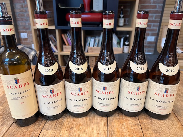 Scarpa in Nizza was as we remembered it. Enrico showed us around; Silvio the present wine maker popped in to say hello (above, left) as did Davide, the MD, and finally 82 year old Carlo Pesche (above, right) appeared at the tasting (he has an apartment in the winery, and having joined the company in 1962 he is the repository – the ‘bible’ of their tradition) and egged Enrico on to serve the 2014 which was the star of the line up.