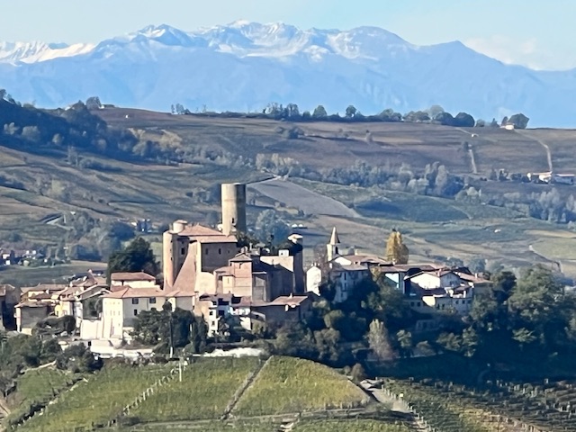After our excellent truffle lunch in Vaglio Serra, Marco, the MD of the Vinchio Vaglio cooperative kindly drove us to I Castelli in Alba. We arrived at precisely 14.15, as our friends Joanna, Rob, Sue, Ian, Jason and Jess fell out of local Zuppa where they’d lunched after their very early flight from Gatwick to Turin. Rob’s and Jason’s hire cars (Jason’s is electric) were tucked up in the hotel’s underground garage.