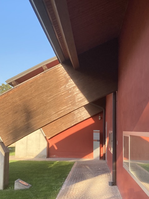 Our 11.00 visit to Vite Colte was disappointing. Cristina had texted to say she wouldn’t be there, and a colleague would look after us. The colleague was terribly nervous and not very fluent, and so uncomfortable we were squirming. She disappeared after showing us round, leaving us to our own devices in the tasting room. The shop was very busy; it makes an unthreatening destination for people enjoying their wines on the clearest and warmest of sunny autumnal days. We had a brief tour, but our friends didn’t get to see the remarkable grass roof…