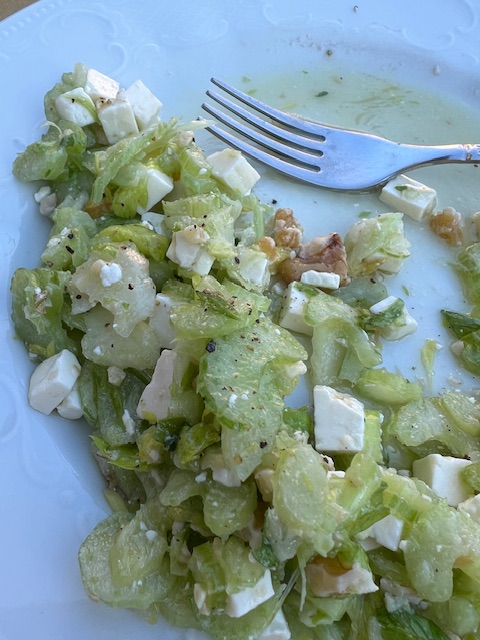 The day was delightful if not quite as beautiful as yesterday, and cooler, but we walked to the local bar in Castiglione Falletto to sit on the full balcony (with obligatory and if in the shade, as we were, necessary blankets) for lunch of parmigiano (NOT a hot parmigiana) and celery and toma salad.
