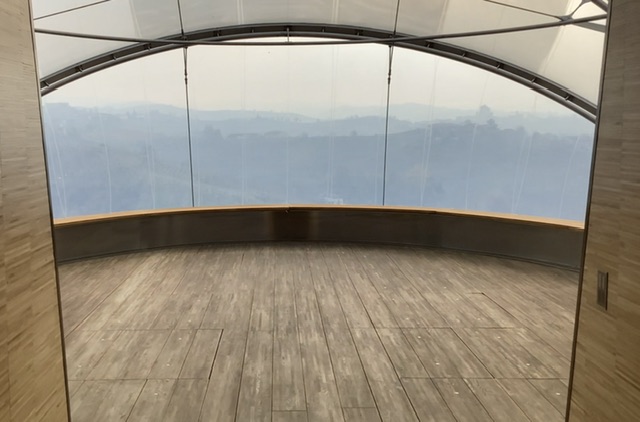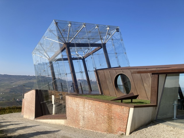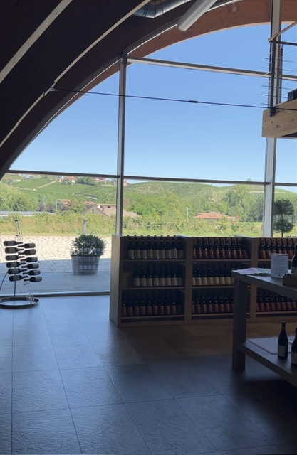 After a lie in we set off for Ceretto HQ near Alba for a 10.30 appointment with Federico’s cousin, Alessandro, the enologist of the family. Here there is another state of the art viewing ‘bubble’ facing south west, overlooking the glorious landscape, aimed undoubtedly at their many visitors.