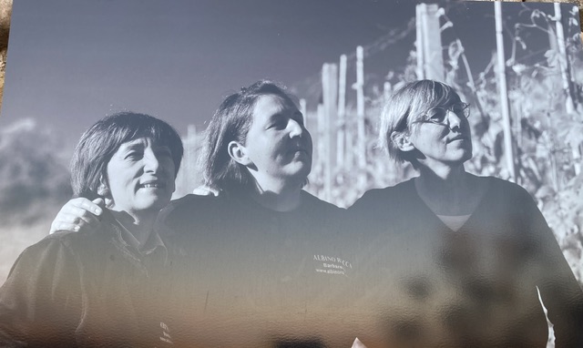 As the evening light began to fade, we walked up to the Antica Torre where the route was furnished with a host of fabulous photos of local wine producers, some of whom are shown below. Angelo Gaia’s warm smile is immediately recognisable; the three sisters, now together running the winery after the relatively recent deaths of their father Angelo, and grandfather, Albino Rocca; Marco Piacentino of Socré, an architect by training (and responsible for oversight of the recent restoration of the old tower); and finally the four cousins of Ceretto : Alessandro, Lisa, Roberta and Federico (l to r)
