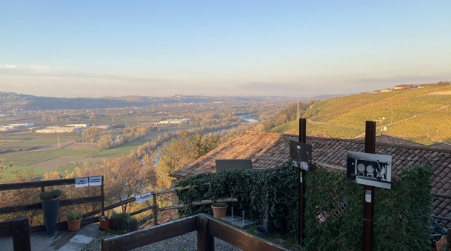 Fabulous views as the nebbia cleared of Brunate vineyards on the slopes up to La Morra across the very busy and fast main road, right up to Ceretto’s decorated art gallery, formerly the chapel of the Brunate borgo, close by the cascina.