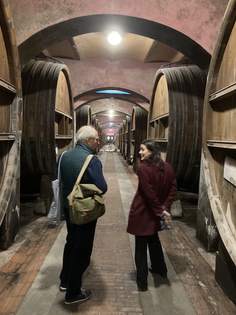 We arrived at Borgogno in Barolo at 16.00 to be greeted warmly by Maria (despite our having mistaken the appointment time) to be shown this vast cantina and to hear its long history before embarking on a seriously long and generous tasting of its back catalogue. She was extremely kind, having already helped us by introducing David to Fontanafredda where she had previously worked, and patiently waited for us to taste, only parting as their enoteca was closing.