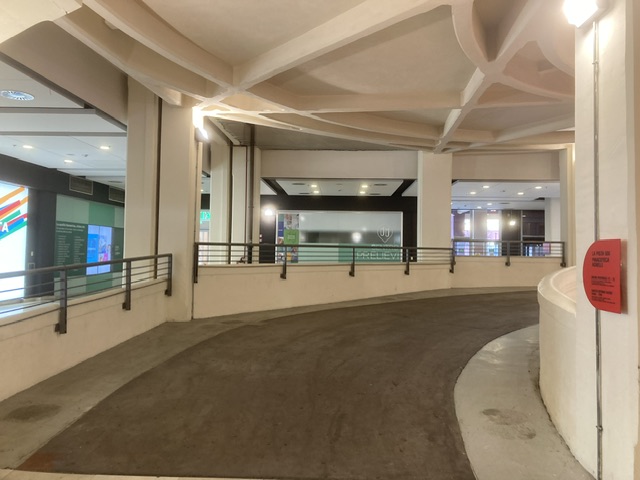 The building is vast and has been repurposed as shopping mall, cinemas, concert hall, congress centre and a hotel. The mature tropical plants now crowd inside the huge rectangular courtyard.