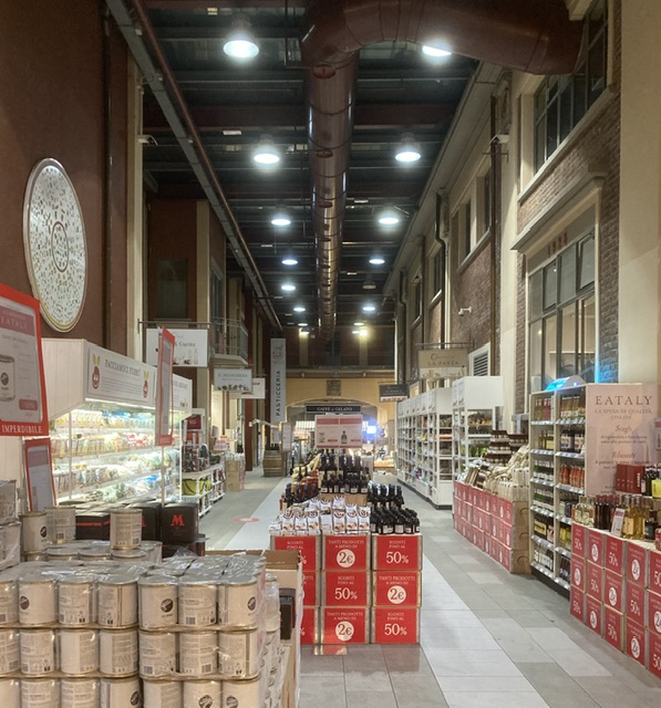 This is another repurposed building! Formerly the Benedetto Carparno Vermouth factory, built in 1786 to produce Vermouth, or Vermut as it was known, this is now the Torino branch of the Eataly chain of large format/footprint Italian marketplaces comprising a variety of restaurants, food and beverage counters, bakery, retail items, and a cooking school. The building is beautifully restored and re-used to great effect…