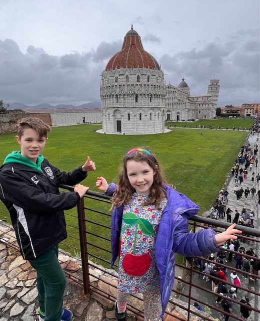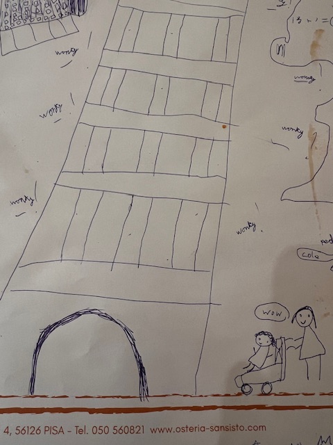 We had one more stroll around the Leaning Tower, the exquisite Duomo and Baptistery, and our first (of many) gelati, before an early pasta supper for the family