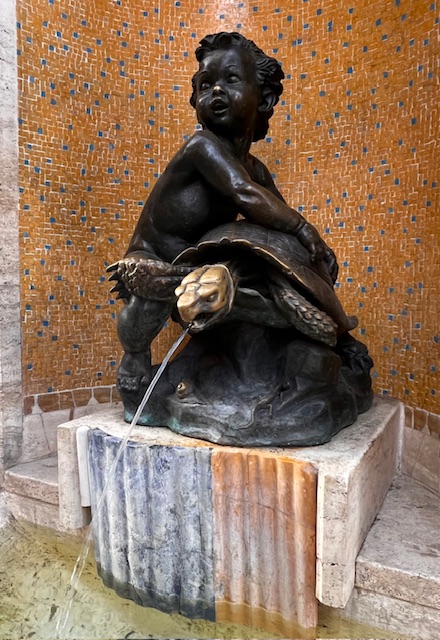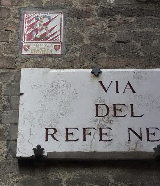 Ernest opted for the chiocciola (snail) and Olive for the giraffa, (you guess!) and armed with their respective flags we set off in search of the little signs and notices, often high up above the street names, and the fountains and figures.