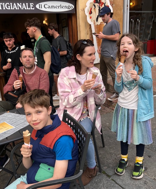 Of course we’d missed lunch, and as even a small army marches on its stomach we headed to the Campo, to find one of the many gelaterie we had promised Olive..
