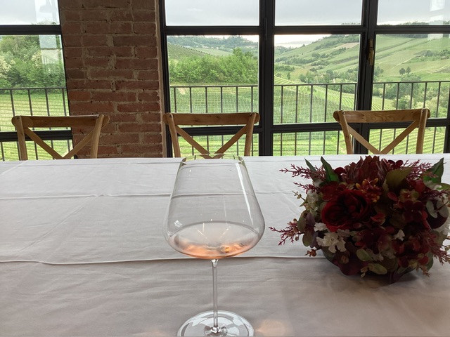 We tasted the erbaluce/sauvignon blanc blend; a rosato (which tasted a little confected) and then a string of Dolcetto, Barbaras, two Barbarescos 2021: Bric Turot, and Secondine, made identically but very different; and then the Barolos 2020: Bussia, and Serra.