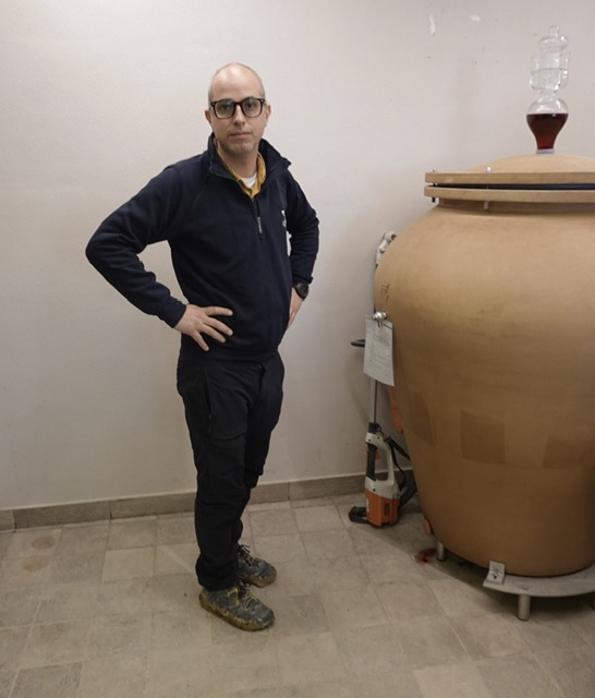 The grapes are fermented in small concrete tanks crammed into the next room, with flat pack boxes stuffed into various nooks and crannies. For those for whom hygiene in the cantina is essential these tight grubby spaces would be a nightmare, but Renato and Chiara’s wines are remarkable; fragrant, fruity with soft tannins and great depth.