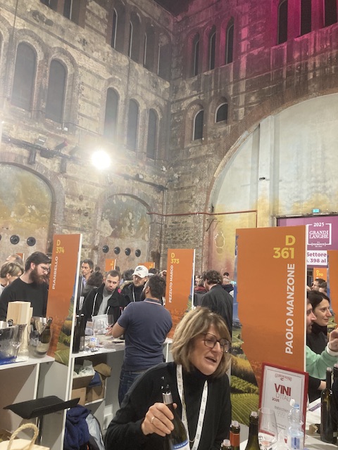 The wonderful OGR building has opened two additional rooms to accommodate this year’s enlarged version of Grandi Langhe, now billed with Vini di Piemonte, and there were over 500 producers showing their wines including those from Monferrato and Alto Piemonte. This development is contentious; the Langhe producers less enthusiastic than the newcomers. The buyers and the journalists, including David, are supportive.
