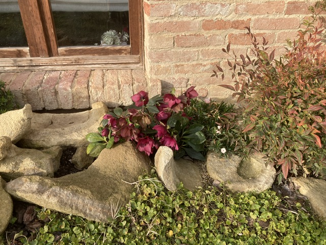 This time the sheep were secure in what had been the chicken run, timid when turned out to graze. The poultry have been re-housed. The main building is undergoing major and noisy refurbishing, to be finished in May. The vineyard immediately behind the house sits on Sant’Agata marls, sodden from autumn rains and extraordinarily cloying. A few steps into the rows attracted kilos of slimy yellowy mud some of which clung on all day. I kept my distance; David had his boots on.