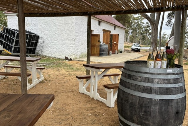 We drove through Elim – a small originally Mennonite community with its distinctive thatched cottages, to meet some Agulhas Wine triangle producers at Black Oystercatcher wines where Denzel Swarts chaired as the owner himself was unwell.