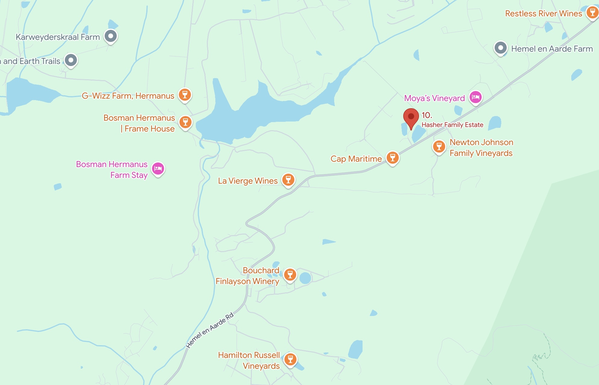 The wine-maker tells us this is a winery which has matured in many ways in its twenty years. The slightly erotic overtones of its early labelling (eg Jezebelle, Seduction and so on) were a response to its name – and Ronnie tells us that though it used to be painted in a loud pink, he much prefers the present more elegant grey. Its business ambition and seriousness have also grown up, as it responds to its fortunate place in the successful, world famous, affluent Hemel en Aarde region.