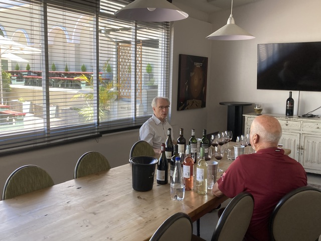 The estate was sold in the early 2000s and the group who bought built a large house, which despite being fully serviced every day, is hardly used! Lizette hopes it will find a more creative purpose than a one-night-a-year stay by its owners. Lizette is a wonderful host, and having worked in London for Majestic, benefitting from its use of WSET courses to train its staff, led a really interesting tasting in the cellar, before the wine-maker arrived, and joined in, encouraging us to taste his Italian blend of Sangiovese, Nebbiolo, Barbara, Mourvèdre and Pinot Noir. Well!