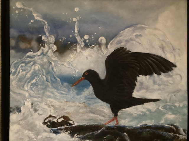 We spent that night in their cottage, aware that Cape Agulhas is the most southerly point of the African continent. We hardly saw a car on either journey, but we did see Ostrich and Springbok (though no Cape Leopard, snakes or Black Oystercatchers; the two below are from paintings at the winery!) – so different from the crowds and traffic of Somerset West and Stellenbosch.