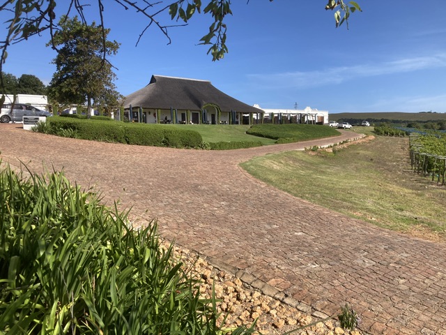 We were a little early for Springfontein Wine Estate whose owner Johst Weber shook on its purchase 30 years ago on his second day ever in SA having seen an advert for it in Decanter! He was drawn to growing vines in this milder maritime climate on an unusual outcrop of limestone which stretches from Johannesburg, and under which is the pure fresh water of the huge natural reservoir.
