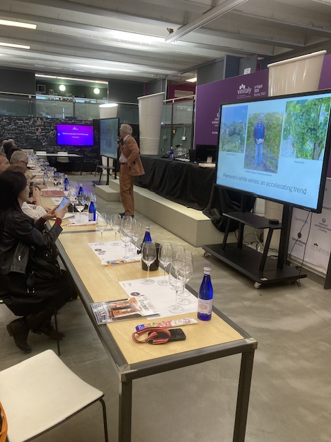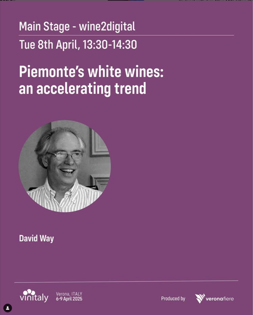 And of course the main excitement revolved around David’s presentation on Tuesday of his research on the increase of plantings in Piemonte of white wine grapes in the last 17 years, just published in the VinItaly edition of Decanter, and held in the main presentation suite where we had often listened to and tasted with the great and the good. He did a brilliant job!