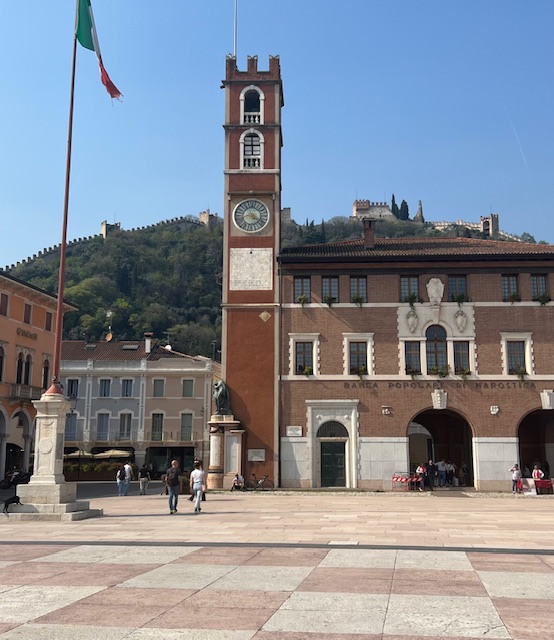 Angela very kindly took us to the neighbouring town of Marostica to enjoy exceptional local cooking at the Osteria Madonnetta and fine views of the two castles. Its central square, the Piazza degli Scacchi, annually hosts an enormous chess competition with people as pieces clad in quasi-medieval garments (think Massa Marittima’s’ archery competitions and Siena’s Palio). It draws huge crowds!