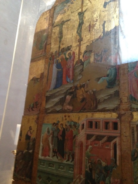 What follows are some examples of the panels which appear on both sides of the Maestà. It was a privilege to be able to see close up these beautiful pieces brought together from around the world. It was an extraordinarily moving exhibition.