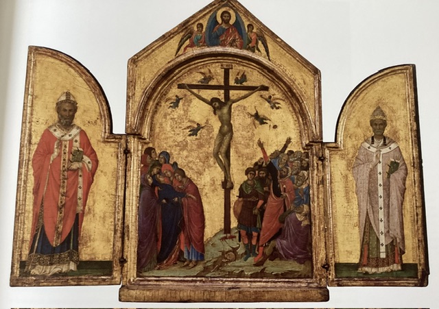 Duccio was not alone in producing this amazing art. The pieces which follow are the work of notable (if younger) contemporaries, Pietro Lorenzetti, and Simone Martini, who were undoubtedly influenced by Duccio, and some of whose works were also part of the Siena exhibition. (Note: it included the work of Ambrogio Lorenzetti, Pietro’s younger brother; he enjoys a special mention at the close of this piece!)