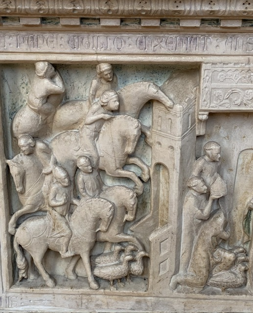 The years between 1300 and 1350 overlap with the adult life of Dante Alighieri. He would probably have used the via Francigena to Rome in 1301 in pursuit of support from the papal state for his White Guelph ‘tribe’ in Florence, which was not forthcoming. After his banishment from Florence, Dante travelled widely in Tuscany, Liguria, the Veneto and the Marche, and may have seen some of the exhibits in their original locations, over seven hundred years ago. Astonishing.