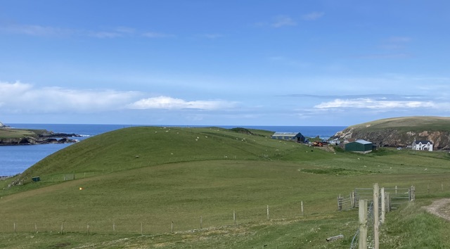 It was a long drive (54 miles) south from Burravoe to Sumburgh, via the Ulsta – Toff ferry back onto the mainland, during which we travelled through the landscape from almost top to bottom of the archipelago. It seems that nowhere in Shetland is more than four miles from the sea.