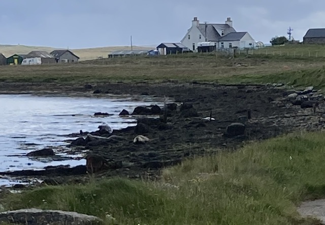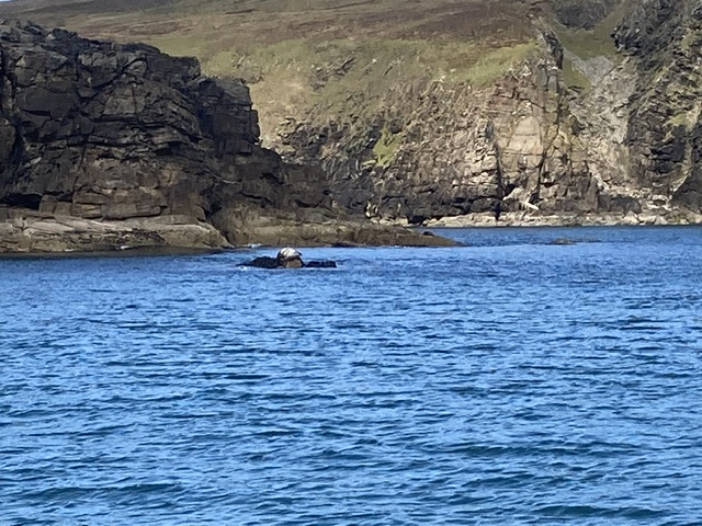 We drove onto Hillswick where we spotted an otter on the rocks of the bay – shortly before an untethered dog frightened it away from the beach