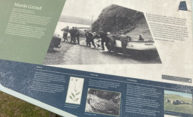 The Shetlanders go to a lot of trouble to inform, explain and educate. Here we could read about the practice of dragging fishing boats across the causeway (to avoid a day’s rowing around Northmavine)