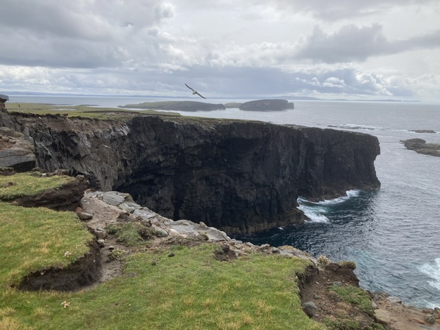 and to see the extraordinary stones thrown up onto the cliff top in raging seas (the wind was very fierce here, and the skies grey) and to capture more views of the massive skuas.