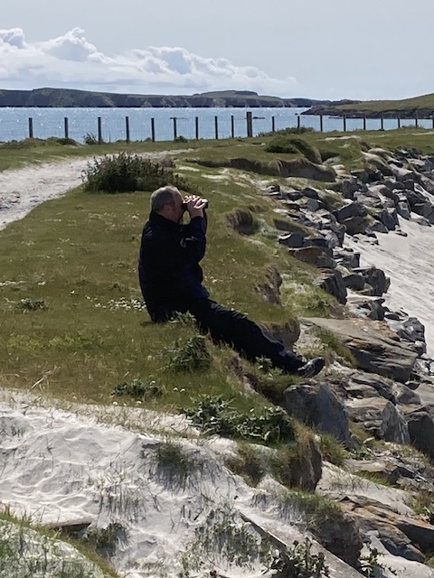 We were in sight of Papa Stour Island, and several ring plovers on the shoreline. At every opportunity – from the boats, the ferries, the cliff tops, the bays and beaches – we had scoured the waves in search of cetaceans – unsuccessfully. Dolphins, Porpoises, Minky whales and Orcas were in very short supply…