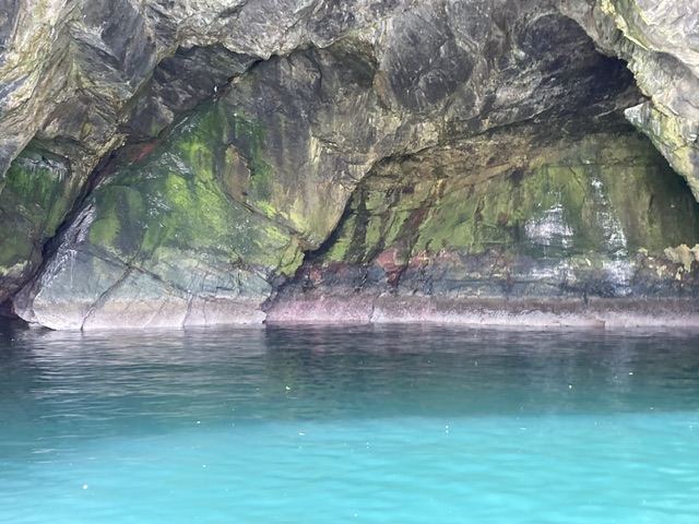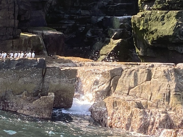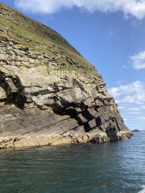 The boat skirted the cliffs of Bressay, providing stunning views of sheer rock faces with strata from myriad geological eras, in stunning colours. It was breath-taking to see.