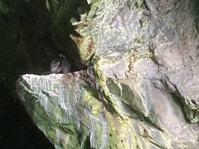 We ate an early supper at the hotel – and by 21.00 we had set off for Sandwick, about ten miles north along the east coast from Sumburgh, to join the Mousa boat, which at 22.00 conveys up to 60 enthusiastic birders from the mainland onto the uninhabited Mousa. Half a mile from the landing stage, the six feet thick outer wall of the Mousa Broch rises up 50 feet, providing an impenetrable and secure space for hundreds of breeding storm petrels. We returned to the hotel at 01.30 on Tuesday after a fantastic midnight expedition.