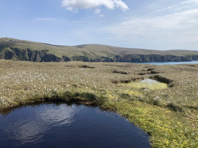 We drove on and on, eventually making it to Hermaness nature reserve, where the path across a slow incline leads eventually to the cliffs and a yet more impressive gannet nesting site. Hugh went in pursuit of red-necked phalaropes reported to be nesting in the bog pools on the cliff’s plateau.