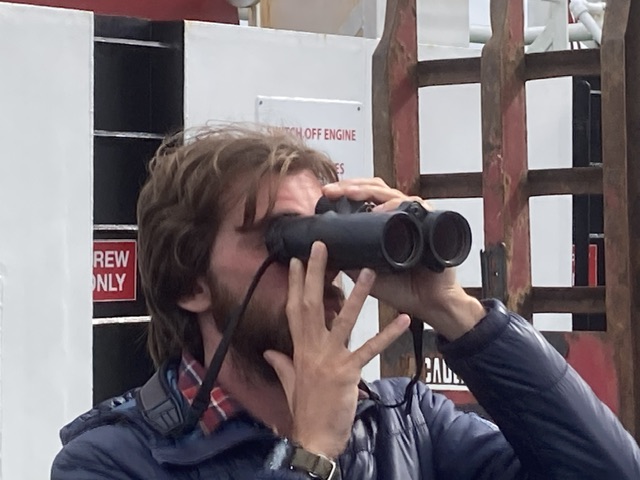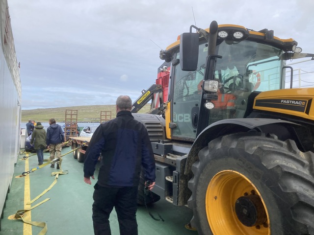 The journeys were punctuated by vehicular distractions. It was quite a surprise to see a very large tractor and trailer on the ferry with us; the Bristol classic car also seems incongruous…and Mark was ever vigilant, scouring the water for surprises…The long ship was well, long…and on land.