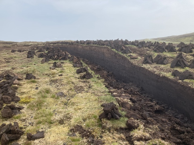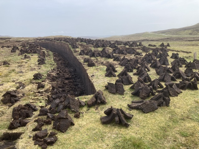 It was a frustrating day for birders, for the wind made listening for birdsong difficult, which then inhibited sightings as we moved on too soon. I enjoyed the variety, and the landscape fascinated me. For example, peat cutting continues, for use as a fuel; we passed deep trenches and carefully arranged drying stacks