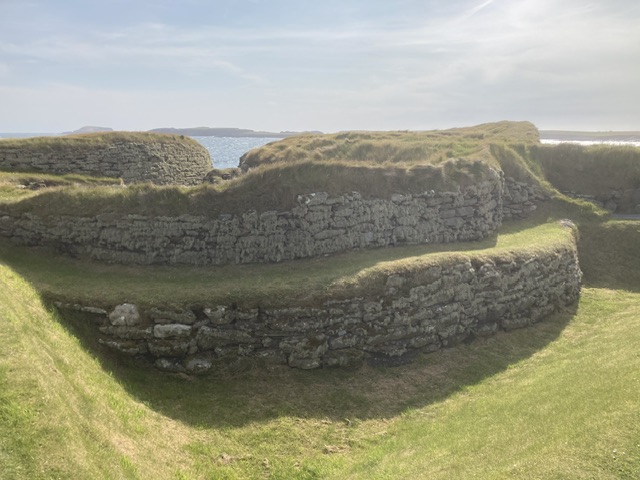 an elaborate Iron Age Broch and wheel houses (some of which have now been lost to the sea)