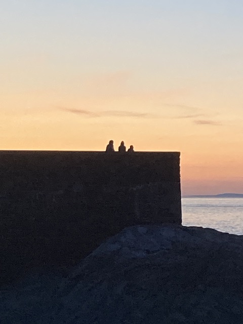 David had found reasonable coffee in a café (Annie and the Flint) on the High Street, but interesting places to eat were in short supply. After struggling through the depressing crowds by the harbour where children nattered for ice creams and parents tried to eke out modest finances with expensive if enormous bags of chips, we headed for the Limekiln on the other side of the harbour, now a bar and popular restaurant. From its balcony over the jetty we watched paddle-boarders enjoy the evening sun and an incoming tide while we drank our beers.