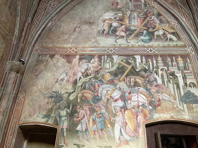 A curious additional chapel was added in 1315, highly decorated by Cenni di Francesco from Florence, a student of Agnolo Gaddi. Its frescoes remain in excellent condition, and illustrate the legends surrounding the Holy Cross, relying on the text of the Golden Legend by Jacopo di Varagine (1228 – 1298).