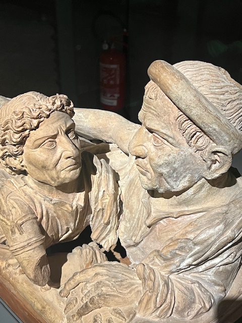 We ate at the very local, unpretentious Il Peschereccio which served as a wet fish shop and ristorante, and later in the afternoon spent time in the Guarnacci Museum, which we had visited first in 2007, with its unique Etruscan C 3 BCE bronze Shadow of the Evening (inspiration for Giocometti’s iconic ground-breaking style). The ducks were from the 7th century BCE. The many hundreds of funerary urns were overwhelming!