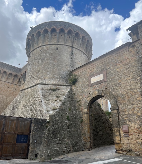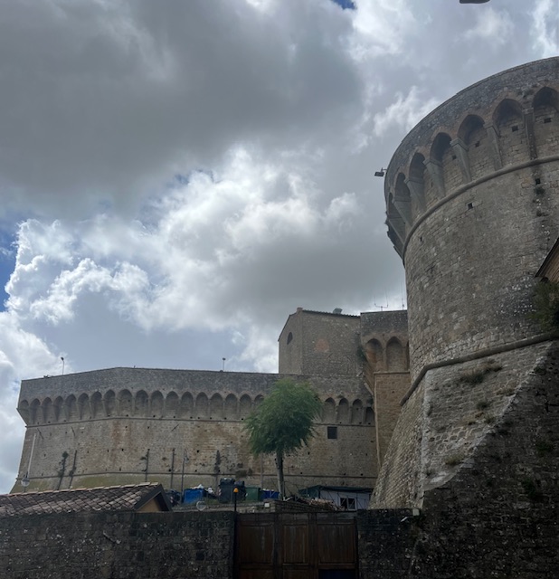 By contrast, the massive Fortezza dominates the eastern end of Volterra’s ridge. The Rocca antica within the fortress was built in 1343, and reinforced by the Rocca nuova in 1472 – 75, built by the Medicis to control – not defend – Volterra once the city had fallen into florentine hands. It has been used as a prison since the 1400s, served as an internment camp during the 2WW, and still holds prisoners today.