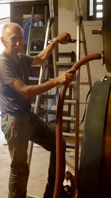 Our next appointment was with Gabriele’s uncle, Guiseppe Gorelli, himself an established consultant and now, wine maker. Coincidentally, he lives and makes wine where Gabriele and Azzura used to live before they moved into a more modern and better equipped house due passi from the Fortezza in Montalcino. He was nervous of our visit, and before our arrival, had furiously cleared up after the last of the grapes were safely stowed away. He talked at length about his newish project, and about his experience of many years working with wine makers.