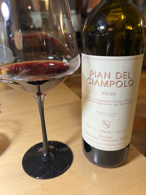 We had supper in La Loggia di Chianti in Radda, overlooking the now empty carpark, the Festa having finished the night before. We enjoyed a wine from an old friend, Pian del Ciampolo of Montevertine, and once again spotted baby James and parents, still pursuing good food and wine despite an infant in tow.
