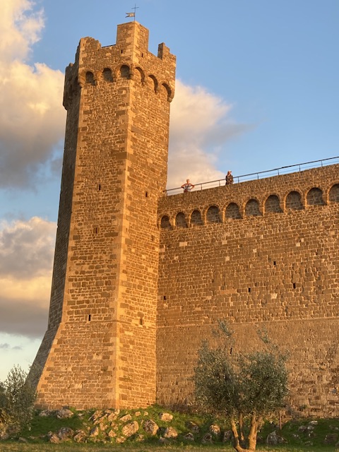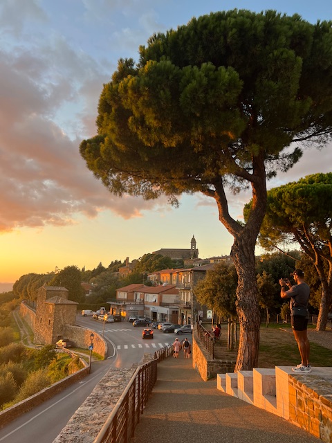 We spent the early evening walking around the town to get our bearings; searching for former hotels, bars and haunts, and saw the sun go down in the west at 19.30 illuminating the walls of the massive Fortezza to the delight of on lookers, before eating in Ristorante San Giorgio on the via San Saloni.